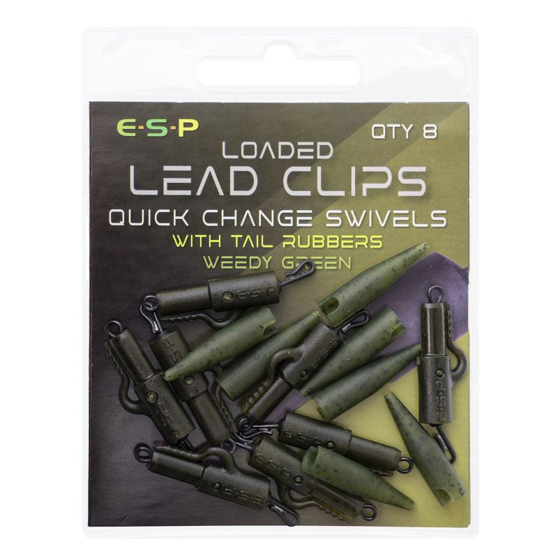 Изработени в нашата собствена фабрика, клипсовете Loaded Lead Clips разполагат с интегриран вирбел, който се завързва към основното влакно или повода. Предлагат се два вирбела - бързосменящ се и вирбел с уни-линк пръстен, за да се отговори на различните предпочитания. Рамото за задържане на оловото е достатъчно здраво за големи поводи, но ще го освободи, когато рибата се закачи или по преценка на рибаря. Гумичките на опашката осигуряват обтекаемо, противозаплитащо съединение и са съвместими с тръби Tungsten Loaded. Във всяка опаковка има осем клипса за оловни влакна и гумички на опашката, които се предлагат в три приглушени цвята (зелено, камуфлажно кафяво и тинесто сиво), които се съчетават перфектно с различни повърхности.