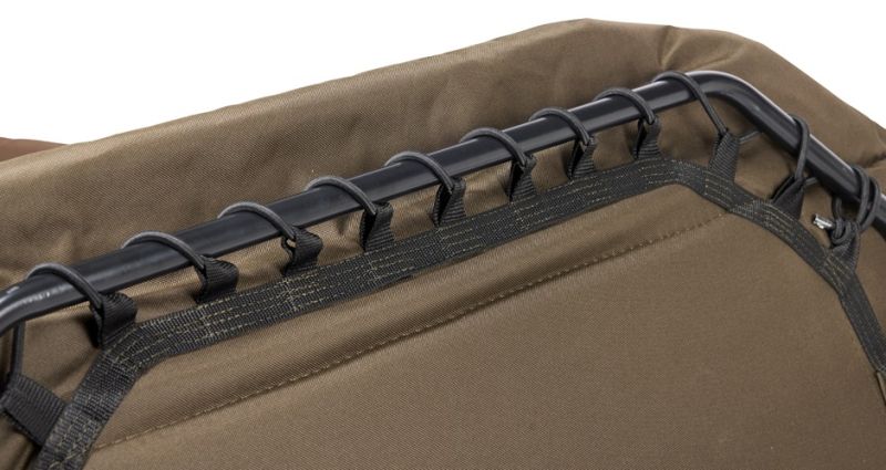 Леко легло със здрава конструкция от авиационен алуминий. Много здрав и издръжлив, но същевременно ултра лек! Матракът е силно подплатен и има термо слой. Спалната централна част с топъл полар на повърхността е подплатена с най-висококачествена пяна. Ергономична интегрирана възглавница под главата. Повърхностната тъкан е много издръжлива. Това прави спането по-удобно и дори при продължителна употреба няма да увисне. Височината под главата може да се регулира чрез изпъване на краката. Разполага с 8 телескопични крака с широки крачета против кал за максимална стабилност и комфорт при спане. Дължина 220 см, ширина 100 см, регулируема височина 40-56 см, тегло 9.8 кг, товароносимост 150кг.