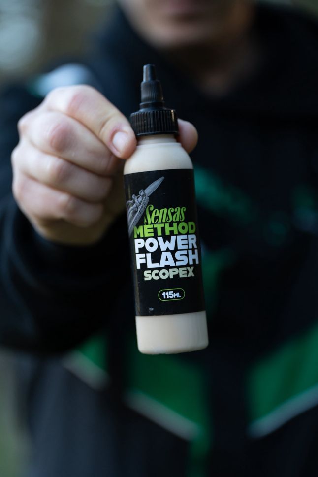 Power Flash Gel служи като атрактор и подсилвател. Може да се използва върху хранилка, върху стръв или при миксове с топчета. Съдържа балансирана комбинация от атрактивни вещества и вкусови стимулатори, които привличат шарана от голямо разстояние. Благодарение на гел структурата си, можете лесно да го нанесете върху хранилка или стръв. След като попадне във водата, гелът е неактивен за кратко време, така че ще потъне на дъното заедно със стръвта ви и няма да се отмие веднага при удара във водата. След това започва да работи интензивно върху дъното след няколко секунди. Освобождава атрактори и силна ароматна следа в околността. Освен това оставя атрактивен FLUO цветен облак около стръвта или хранилката, който е неустоим за шарана. Разфасовка: 115 мл. Цвят: кафяв. Вкус: СКОПЕКС.