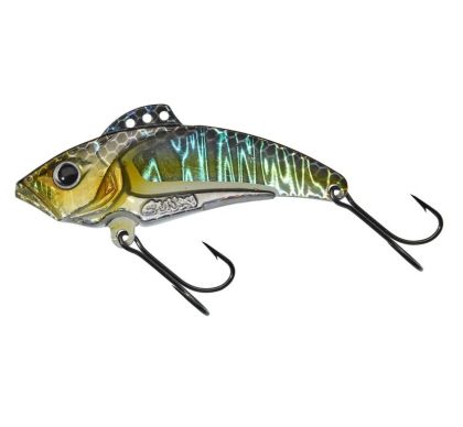 Вибрираща метална примамка за риболов на костур или бяла риба. Препоръчително е да се остави да потъне изцяло и да се повдига чрез няколко бързи оборота на макарата.